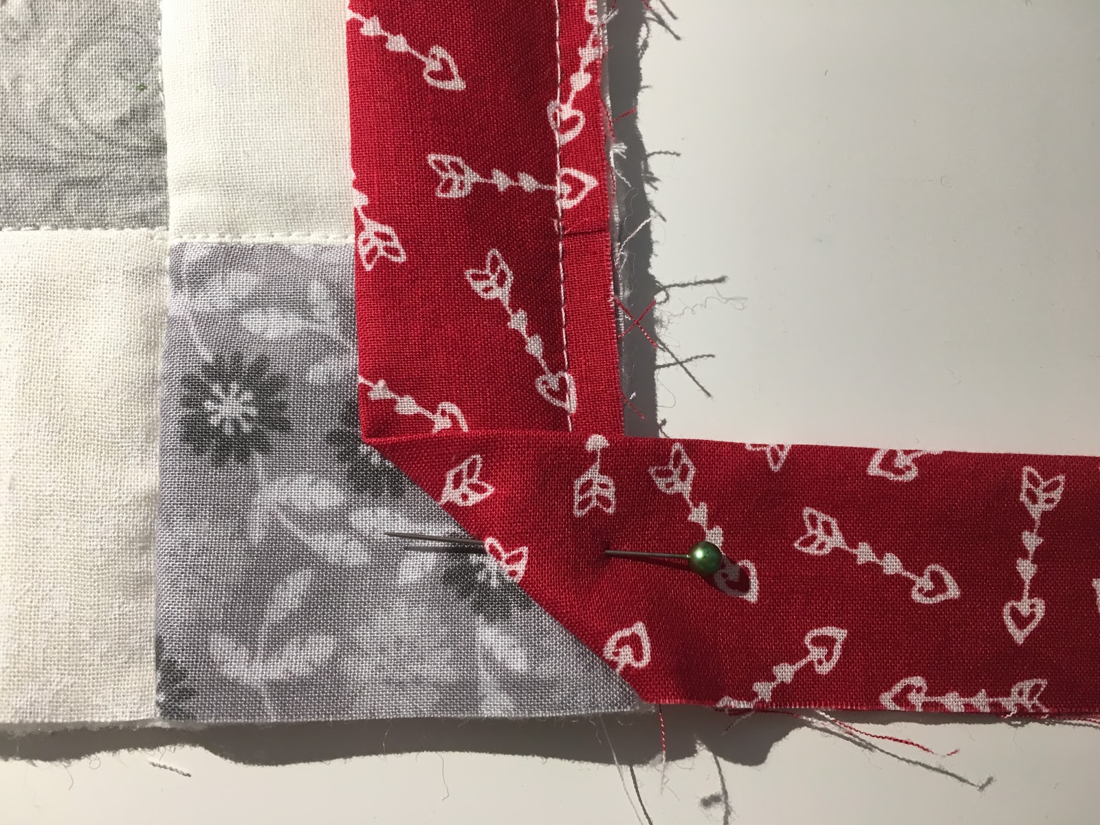 初めて全ての過程をミシンで作ってきたハートのテーブルランナーも、いよいよ周囲にダブルバインディングをして完成です。トップのパッチワークはおとなし目の色でしたが、バインディングは見える量が少ないので思い切って真っ赤にしました。ぐっと引き締まったんじゃないかな?
